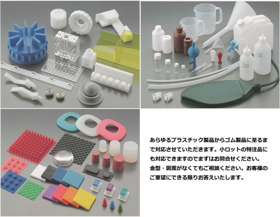 ゴム・プラスチック・ガラスなどの非金属製品も技術力の高い取引先と連携し皆様のご要望にお応えしております。